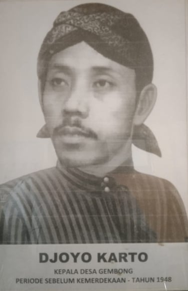 Bapak Djoyo Karto adalah kepala desa Gembong pertama yang memimpin pada era sebelum kemerdekaan dan tercatat sebagai pahlawan, beliau adalah pimpinan perlawanan terhadap belanda saat Agresi Militer Belanda-II di wilayah Desa Gembong dan sekitarnya, dan Beliau gugur pada tahun 1948, makamnya saat ini berada di Taman Makam Pahlawan (TMP) Lamongan dengan nomor 122.